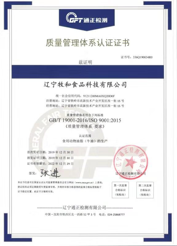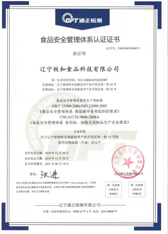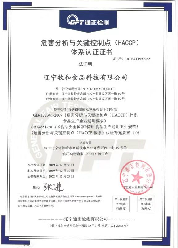 “牧和油脂”通過ISO9001、22000、HACCP三大體系認(rèn)證審核