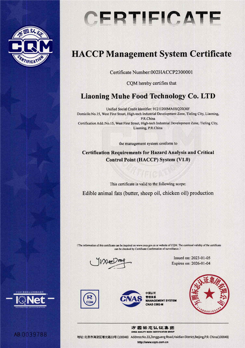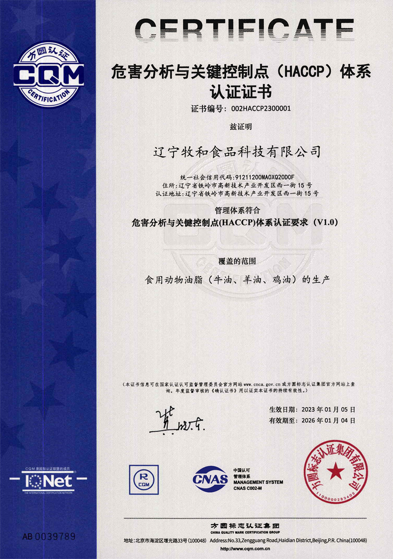 危害分析與關(guān)鍵控制點(diǎn)體系認(rèn)證證書