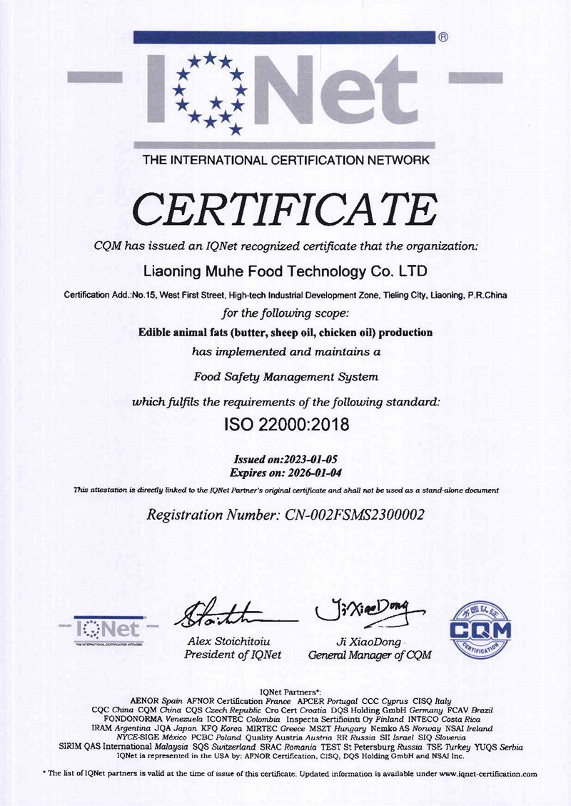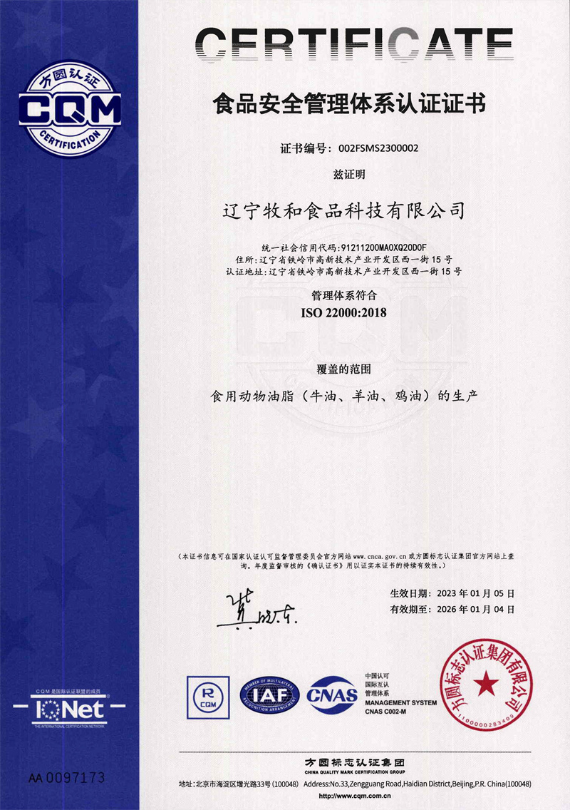 質(zhì)量管理體系認(rèn)證證書ISO22000