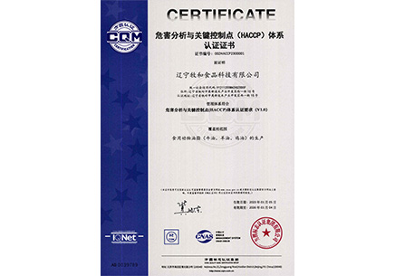 危害分析與關(guān)鍵控制點體系認證證書