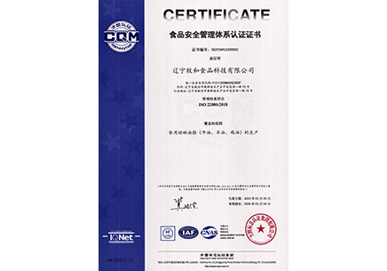 質(zhì)量管理體系認(rèn)證證書ISO22000