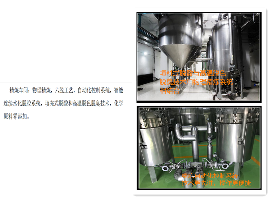 公司打造全產(chǎn)業(yè)鏈經(jīng)營(yíng)模式,1998年創(chuàng)建沈陽(yáng)新光屠宰廠、2014年創(chuàng)建沈陽(yáng)福和牛業(yè)有限公司、2018年創(chuàng)建遼寧牧和食品科技有限公司 (畜牧養(yǎng)殖、屠宰分割、油脂加工三位一體),確保食品安全。原料除公司自產(chǎn)外,全部來(lái)自于國(guó)內(nèi)四大牧場(chǎng)。綠色放養(yǎng),吊掛式宰殺工藝,牛脂新鮮無(wú)血漬,采用-18℃冷鏈運(yùn)輸,保證原料新鮮。 工藝采取低溫真空熔煉,全程管道密閉輸送,安全無(wú)污染、不氧化,保留原始脂肪香味。超微過(guò)濾,無(wú)雜質(zhì)。物理精煉脫雜、 脫膠、脫磷、脫色、脫酸、脫臭,全智能控制,品質(zhì)更穩(wěn)定。油質(zhì)清澈透明、無(wú)添加、零污染,急速超冷多級(jí)捏合罐裝,脂香濃郁、口感細(xì)膩。炒料不渾湯、不起泡、回味悠長(zhǎng)、湯清色亮。
